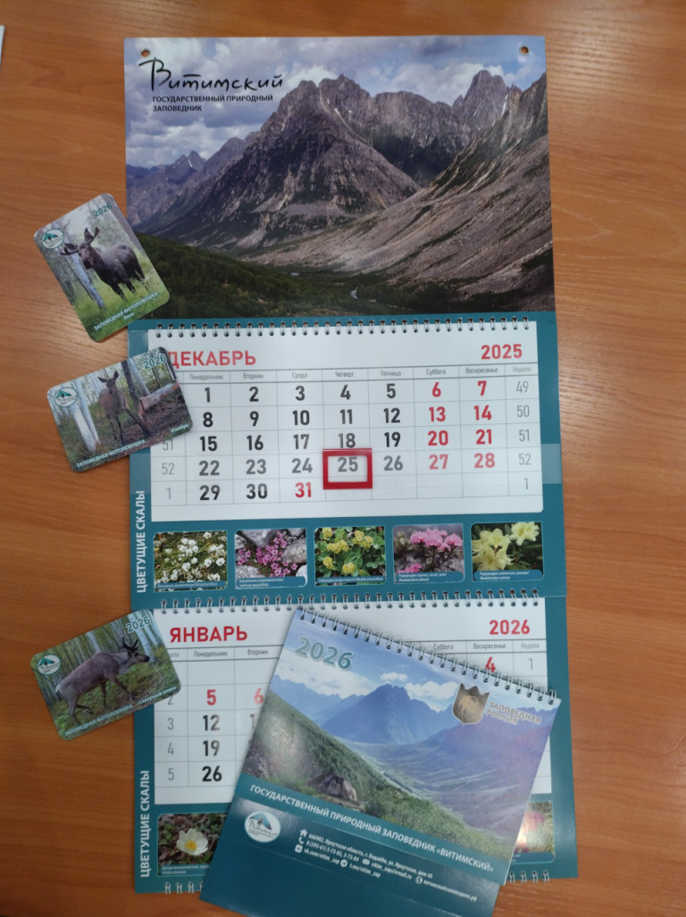Витимский заповедник традиционно выпустил календари на очередной год. Карманные календарики на 2026 год посвящены диким копытным. Фотоловушки запечатлели лося, северного оленя, изюбря в разных точках заповедника. Наши инспектора в течение всего теплого периода года обслуживали подкормочные комплексы, собирая фото- и видеоматериал.